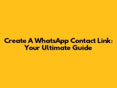 Create A WhatsApp Contact Link: Your Ultimate Guide