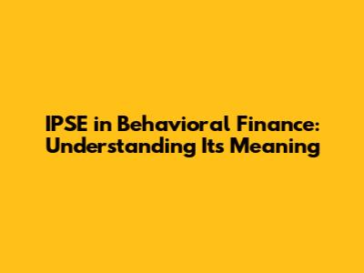 Hey guys! Ever heard of IPSE in the context of behavioral finance and wondered what it actually means? Well, you're in the right place! Let's break it down in a way that's super easy to understand. Behavioral finance is a fascinating field that combines psychology and finance to explain why we make the financial decisions we do. It's all about understanding the biases and emotions that influence our choices, often leading us away from rational, textbook-perfect decisions. Within this field, various concepts help us understand these irrational behaviors, and one of them is IPSE.