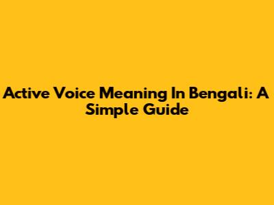 Active Voice Meaning In Bengali: A Simple Guide
