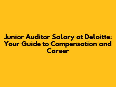 Junior Auditor Salary At Deloitte: What You Need To Know
