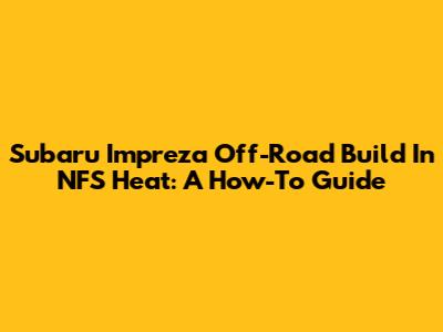 Subaru Impreza Off-Road Build In NFS Heat: A How-To Guide