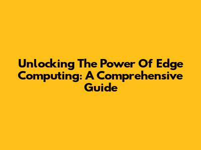 Unlocking The Power Of Edge Computing: A Comprehensive Guide