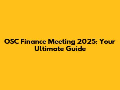 OSC Finance Meeting 2025: Your Ultimate Guide