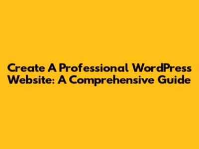 Create A Professional WordPress Website: A Comprehensive Guide