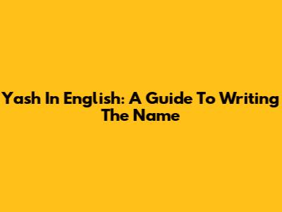 Yash In English: A Guide To Writing The Name