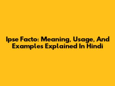 Ipse Facto: Meaning, Usage, And Examples Explained In Hindi