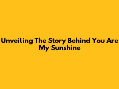 Unveiling The Story Behind 'You Are My Sunshine'