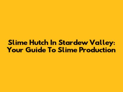 Slime Hutch In Stardew Valley: Your Guide To Slime Production