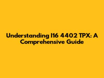 Understanding I16 4402 TPX: A Comprehensive Guide