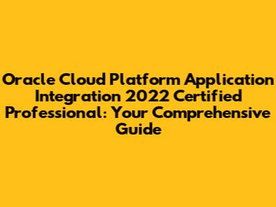 - Validation: This certification validates a professional's ability to design, develop, secure, and manage integrations using Oracle Cloud Platform Integration services. It demonstrates a deep understanding of integration patterns, best practices, and Oracle's integration offerings.