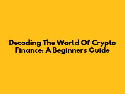 Decoding The World Of Crypto Finance: A Beginner's Guide