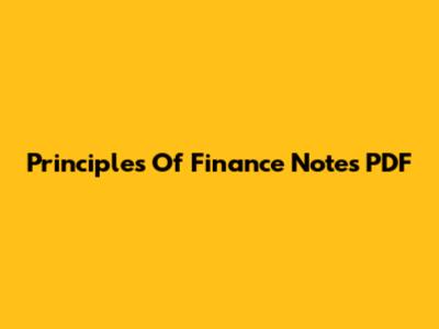 Principles Of Finance Notes PDF