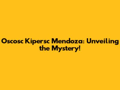 Have you ever stumbled upon a name that just sparked your curiosity? A name that seems to hold a secret, a story waiting to be told? Well, Oscosc Kipersc Mendoza is one of those names! It might sound like a character from a fantasy novel, a code word from a spy movie, or perhaps even a hidden gem from a historical archive. Whatever it is, it’s intriguing, right? Let’s dive deep into what makes this name so captivating and explore the potential origins and meanings behind it. Guys, buckle up, it's going to be a fun ride!