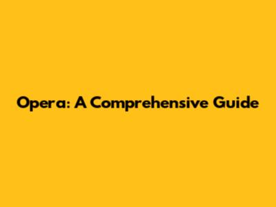 Opera: A Comprehensive Guide