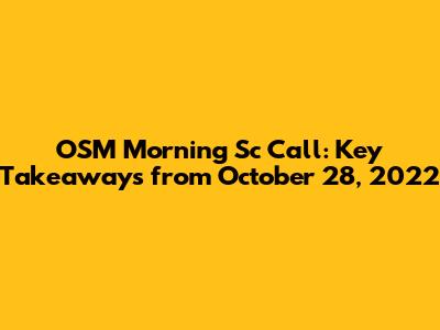 Hey everyone, and welcome back! Today, we're diving deep into the OSM Morning Sc Call that happened on October 28, 2022. This session was packed with some seriously valuable insights, and I'm stoked to break it all down for you guys. We'll be covering the hottest topics, the most crucial updates, and what you absolutely need to know to stay ahead of the curve. So, grab your coffee, get comfy, and let's get into it!