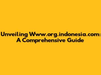Unveiling Www.org.indonesia.com: A Comprehensive Guide