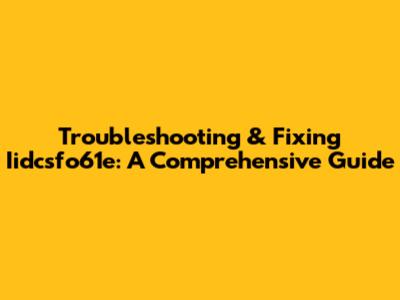 Troubleshooting & Fixing Iidcsfo61e: A Comprehensive Guide