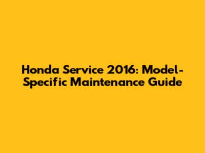 Honda Service 2016: Model-Specific Maintenance Guide