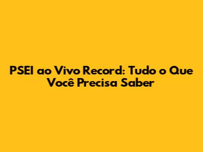 PSEI Ao Vivo Record: Onde Assistir, Horários E Mais!