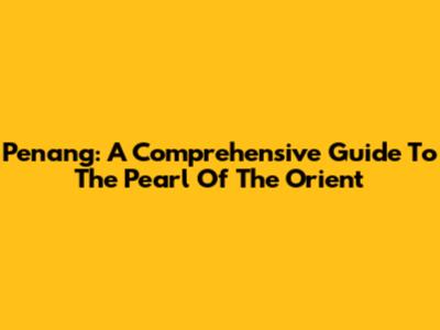 Penang: A Comprehensive Guide To The Pearl Of The Orient