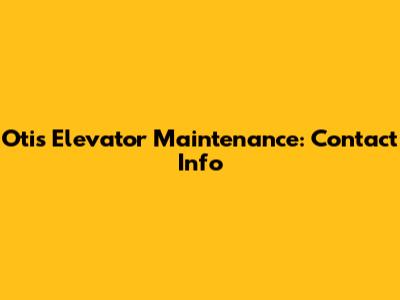 Otis Elevator Maintenance: Contact Info