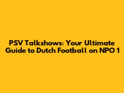 Unveiling the World of PSV Talkshows on NPO 1