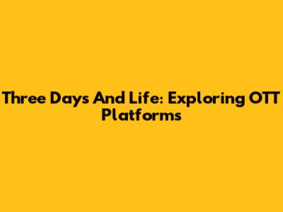 Three Days And Life: Exploring OTT Platforms