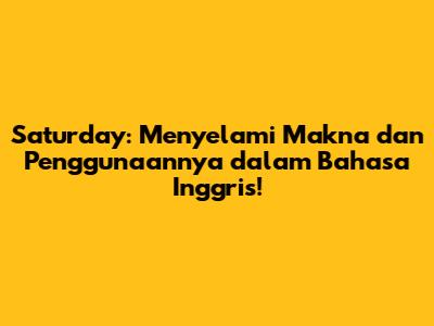 Saturday: Makna, Penggunaan, Dan Fakta Menariknya!