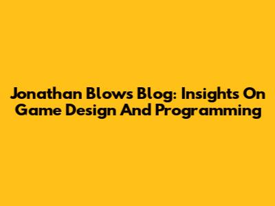Jonathan Blow's Blog: Insights On Game Design And Programming