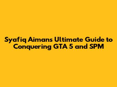 Syafiq Aiman's Guide To GTA 5 & SPM Success