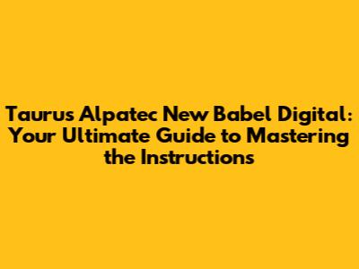 Conclusion: Mastering Your Taurus Alpatec New Babel Digital