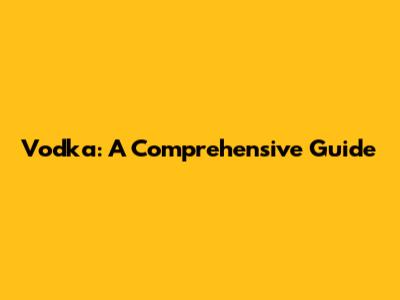 Vodka: A Comprehensive Guide