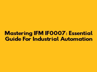 Mastering IFM IF0007: Essential Guide For Industrial Automation