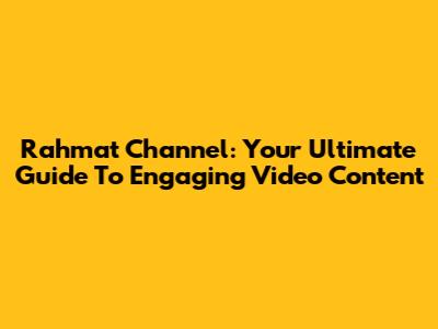 Rahmat Channel: Your Ultimate Guide To Engaging Video Content