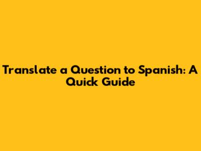 Translate A Question To Spanish: A Quick Guide
