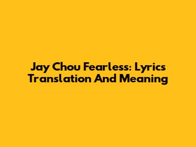 Jay Chou Fearless: Lyrics Translation And Meaning