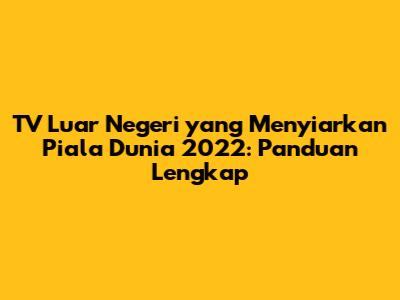 Piala Dunia 2022 telah menjadi perhelatan sepak bola paling dinantikan di seluruh dunia, dan bagi para penggemar di Indonesia, pertanyaan tentang di mana dan bagaimana menonton pertandingan ini sangat penting. Untungnya, ada banyak TV luar negeri yang menyiarkan Piala Dunia 2022, menawarkan berbagai pilihan untuk menikmati setiap momen dari turnamen bergengsi ini. Artikel ini akan menjadi panduan lengkap untuk Anda yang ingin tahu saluran TV mana saja yang menyiarkan Piala Dunia 2022, bagaimana cara mengaksesnya, dan apa saja yang perlu Anda ketahui agar tidak ketinggalan satu pun pertandingan.