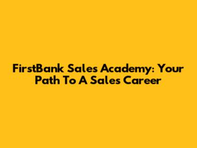 FirstBank Sales Academy: Your Path To A Sales Career