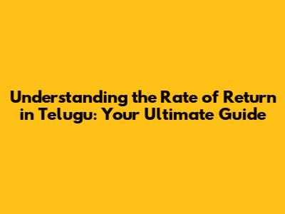 ROR in Telugu (రిటర్న్ రేటు)