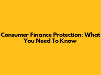 Consumer Finance Protection: What You Need To Know