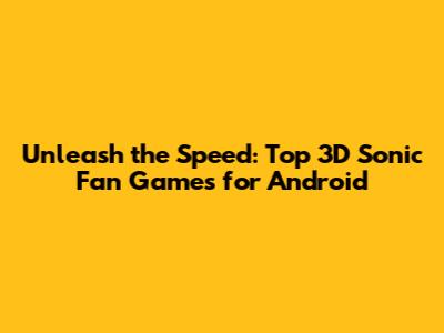 Top 3D Sonic Fan Games for Android: A Deep Dive