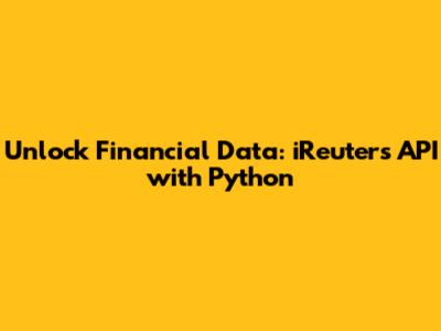 Hey everyone! Ever wanted to dive deep into the world of financial data, like, really deep? Well, if you're a Python enthusiast, you're in luck! Today, we're going to explore the iReuters API and how you can harness its power using Python. This is your ultimate guide, so buckle up because we are getting ready to build something awesome. Getting started with financial data can be intimidating, but trust me, with Python and the iReuters API, it’s a whole lot easier – and a whole lot more exciting – than you might think.