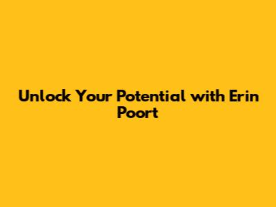 Hey everyone! Ever feel like you're just spinning your wheels, not quite hitting those goals you've set for yourself? It's a super common feeling, and honestly, we've all been there. But what if I told you there's a way to cut through the noise and really tap into your full potential? That's where someone like Erin Poort comes into the picture. Whether you're aiming for career advancement, personal growth, or just want to feel more confident and capable in your daily life, understanding how to leverage your strengths and overcome your challenges is absolutely key. We're going to dive deep into how focusing on the right strategies can make a massive difference. It's not about some magical overnight fix, but about building sustainable habits and adopting a mindset that empowers you to achieve what you set out to do. So, stick around, because we're about to explore some seriously game-changing insights that could help you redefine what you thought was possible for yourself. Let's get started on this journey to unlocking your best self!