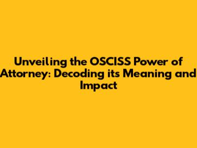 Decoding the OSCISS Power of Attorney: What Does It Actually Mean?