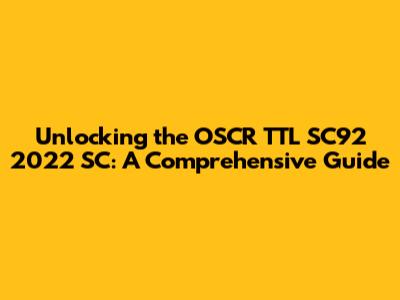 Hey everyone, and welcome back to the blog! Today, we're diving deep into something super specific but incredibly important if you're dealing with it: the OSCR TTL SC92 2022 SC. Now, I know that sounds like a mouthful, and honestly, it can be a bit of a puzzle to get your head around. But don't worry, guys, we're going to break it all down together. Think of this as your ultimate cheat sheet, your go-to resource for understanding exactly what this standard is all about, why it matters, and how it impacts you. We'll cover everything from its core purpose to the nitty-gritty details that make it tick. By the end of this article, you'll feel like a total pro, ready to tackle any questions or challenges related to the OSCR TTL SC92 2022 SC.