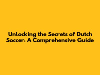 The Future of Dutch Soccer: Challenges and Opportunities