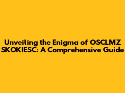 Hey everyone! Today, we're diving deep into the fascinating world of OSCLMZ SKOKIESC. This might sound like a mouthful, or even a complete mystery, but trust me, by the end of this article, you'll have a solid understanding of what it is and why it matters. We'll break down the components, explore its significance, and maybe even uncover a few surprises along the way. So, buckle up, because we're about to embark on an exciting journey of discovery. First and foremost, what exactly is OSCLMZ SKOKIESC? Well, that's what we're here to figure out, right? Let's start with a breakdown of the terms and explore what these initials and words might possibly mean. It could be an acronym, a code, or even a brand name. The possibilities are endless, and that's what makes this so intriguing. The main objective is to understand the context and the meaning behind these words. It could be related to a specific industry, a technological concept, or even a creative project. Understanding the context is really essential to get a clear picture of what OSCLMZ SKOKIESC is all about. There's an investigative feel to this, like we're solving a puzzle or decoding a secret message. This is what makes it fun! There will be a lot of speculation and analysis. Let’s make this an adventure!