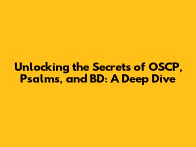 Hey guys! Let's dive into some fascinating topics today, focusing on OSCP, Psalms, and BD – all interconnected in ways you might not initially imagine. This article is your go-to guide for understanding these concepts, their significance, and how they relate to the broader tech landscape. We'll explore each element individually before weaving them together to reveal a comprehensive perspective. Get ready to expand your knowledge base and appreciate the nuances within each area.