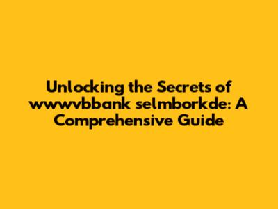 Unveiling the Benefits: Why wwwvbbank selmborkde Matters