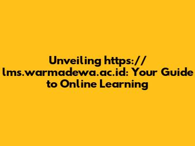 Hey everyone! Ever wondered about the online learning landscape at Warmadewa University? Well, buckle up, because we're diving deep into https://lms.warmadewa.ac.id, your digital gateway to education! This platform isn't just a website; it's a vibrant hub where students, instructors, and all things academic come together. We'll explore its features, benefits, and how it's shaping the future of learning at Warmadewa University in beautiful Bali, Indonesia. Get ready to unlock the secrets of this LMS (Learning Management System) and see how it can enhance your educational journey.